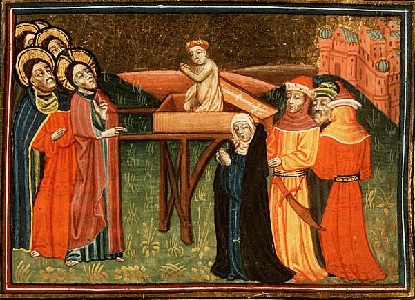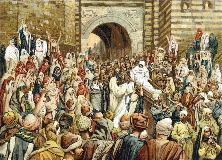 Francois Bovon говорить, що коло Наїнських воріт зустілися дві процесії “парад життя і парад смерті”. Що, зазвичай, відбувається, коли ми зустрічаємося з поховальною процесією? Наприклад, коли весільний кортеж прибуває до перехрестя дороги одночасно з поховальною процесією, хто має поступитися дорогою?