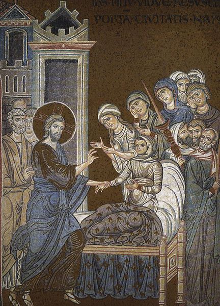 Саме тому Христос спершу побачив роздавлену горем вдову. Того часу суспільство покладало на жінок провину праматері Єви, роблячи їх колективною причиною гріха смерті. На противагу цьому Христос показав жінку причиною воскресіння її сина – “змилосердившись над нею” повернув юнакові життя…