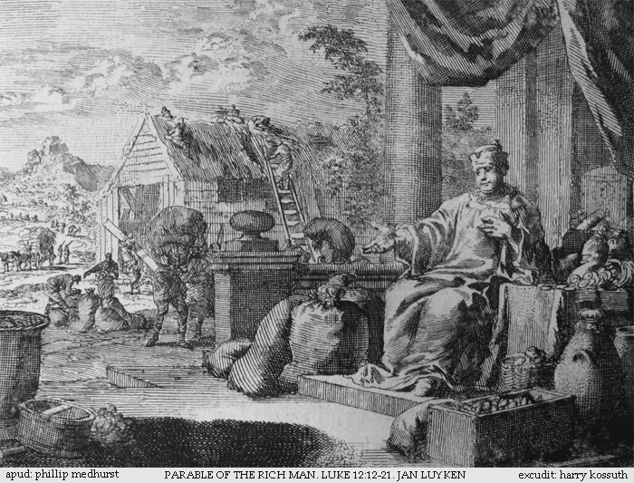У притчі про нерозумного багача Спаситель майже буквально переказує слова Ісуса сина Сирахового: “Добре і зле, життя і смерть, бідність і багатство – від Господа… Хтось робиться багатим від обачливости й ощадливости своєї, і це частина нагороди його, коли він скаже: “я знайшов спокій і тепер насолоджуюся моїми благами”. І не знає він, скільки мине часу до того, коли він залишить їх іншим і помре” (Сирах. 11:14-18).