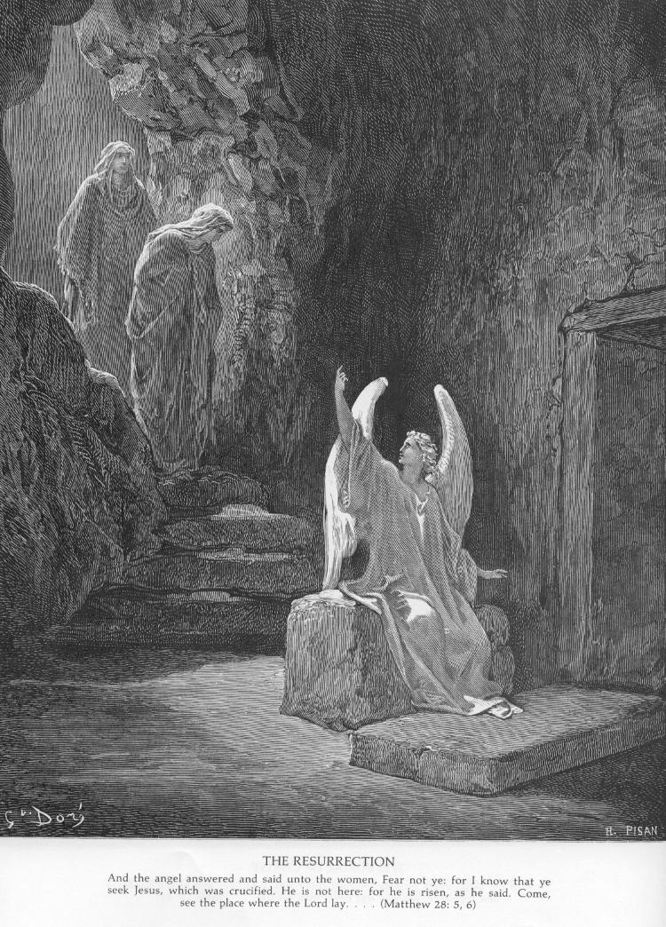 Подібна мить зміни, правда, з протилежним полюсом відбулася дві тисячі років тому. Дві Марії, Іоанна та Соломія стежили за в’язнем, якого прирекли на смерть на хресті. Жінки були свідками агонії і смерті. Вони бачили, як тіло знімали з хреста, одягали саван та клали до гробу.