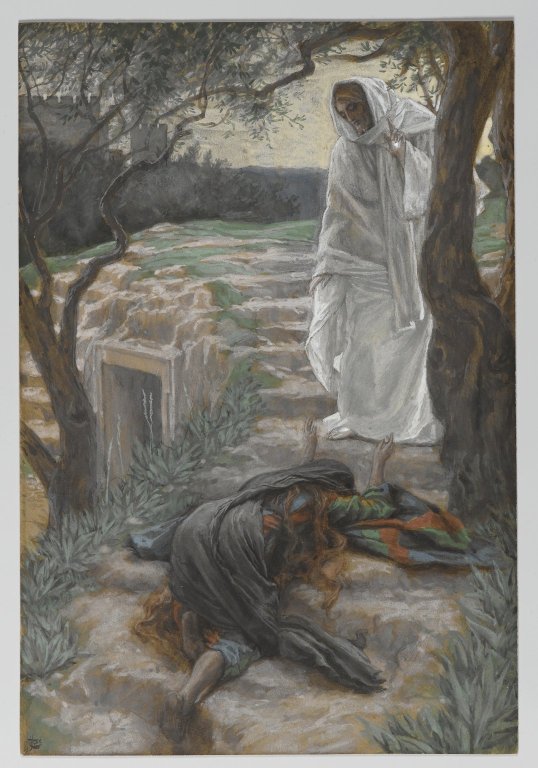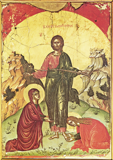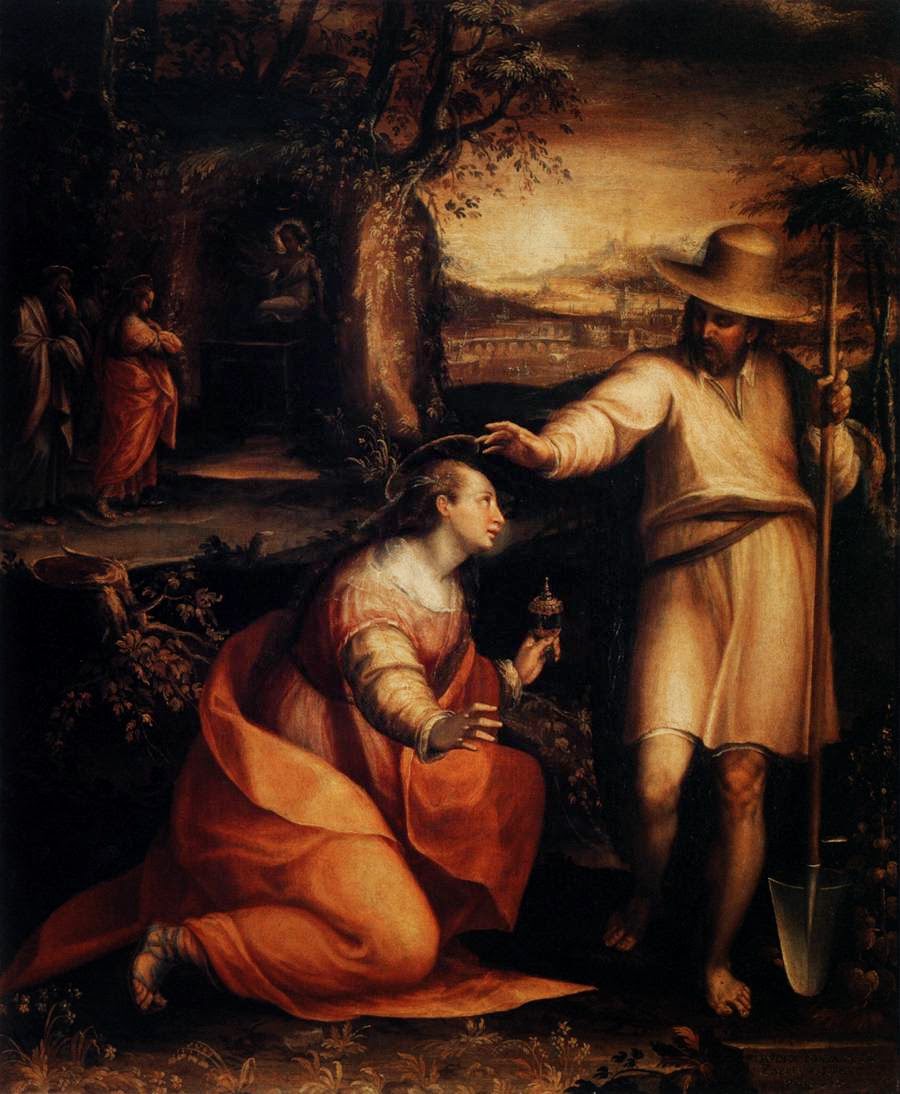 Апостол і євангелист Іоан Богослов змалював події за яких Марія Магдалина першою отримала вістку про Воскресіння Спасителя. Важливо відзначити що євангелист не виказує жодного обурення цим фактом, просто переповідаючи події як даність. Далеко не всі смиренно сприйняли вибір Спасителя. Наприклад, Жан Кальвін зовсім не був захопленим тим, що жінка була першою хто дізнався про Воскресіння. В коментарях на Іоана він пише: “Здається дивним… що Він не обрав надійнішого свідка, а явився жінці: таким чином виконано сказане, що Господь обирає немудре, немічне, незнатне свiту, щоб посоромити мудрих, величних i сильних тілом”. Кальвін пише так, ніби необхідно виправдати вибір Христом жінки…