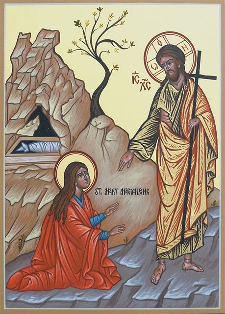 Марія Магдалина. Усі чотири Євангелісти згадують, що Марія Магдалина була серед жінок-мироносиць у день Воскресіння Христового. Святе Письмо не приділяє багато уваги її особі. Апостол і Євангеліст Лука стверджує, що Христос вигнав з неї сім бісів (Лк.8:2) і на цьому конкретика закінчується. Віддавна навколо неї було багато спекуляцій. Її вважали жінкою- грішницею (з Лк.7:36-50) або навіть Марією, що була сестрою Марфи.