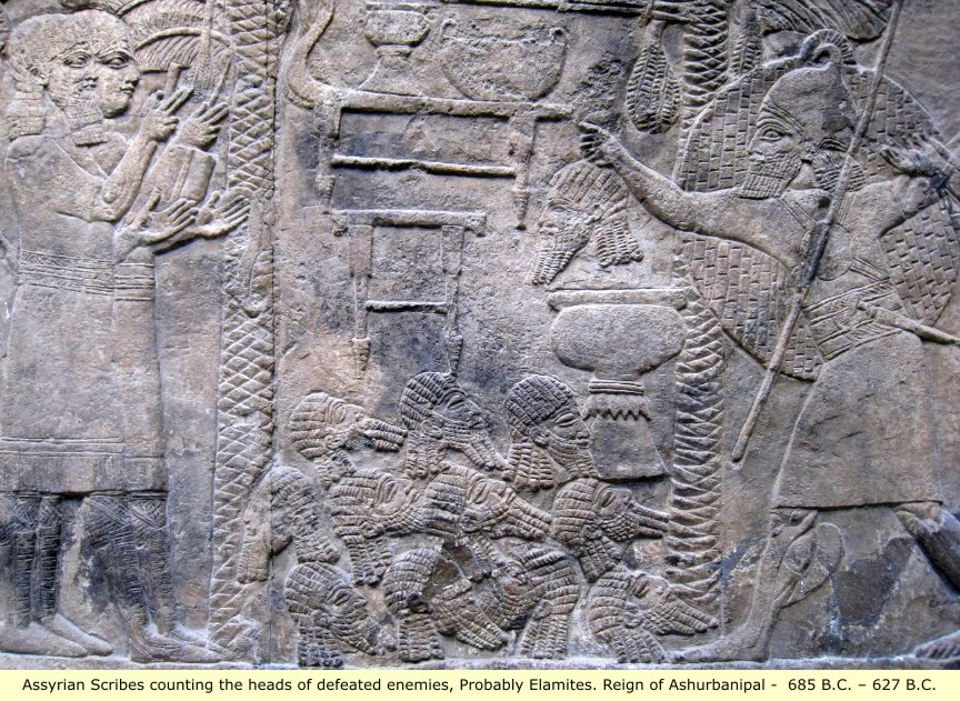 Асирійці були великими воїнами. Більшість войовничих націй того часу були мародерами, що будували власну велич грабуючи інші народи, але асирійці були найлютішими з усіх. Назва їх держави стала синонімом жорстокості і звірства. Вони здирали шкуру живцем, виколювали очі, відрубали кінцівки, калічили і залишали людей помирати від болю, наганяючи невимовний жах на підкорені народи. Збереглися свідчення про те як поводилися асирійськи чиновники, що збирали данину. Вони відрізали язики та хвалилися горами відрубаних голів, щоби залякати підкорених і збільшити данину. В історії античності важко знайти кривавіші сторінки за описи асирійських війн…