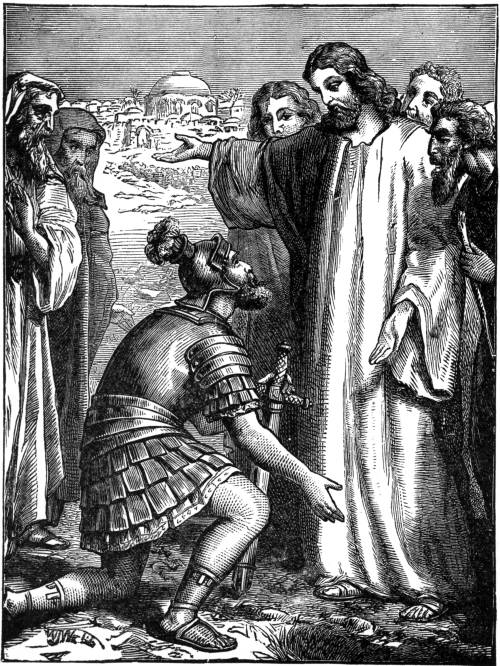 5 А як увійшов Ісус до Капернаума, підійшов до Нього сотник і благав Його: 6 Господи, слуга мій вдома лежить розслаблений і тяжко страждає. 7 І говорить йому Ісус: Я прийду і зцілю його. 8 Сотник же у відповідь сказав: Господи! Я недостойний, щоб Ти увійшов під покрівлю мою; але промов тільки слово, і видужає слуга мій. 9 Бо і я – людина підвладна, але, маючи під собою воїнів, кажу одному: іди, і йде; і другому: прийди, і приходить; і слузі моєму: зроби це, і зробить. 10 Почувши це, Ісус здивувався і сказав тим, що йшли за Ним: істинно кажу вам, і в Ізраїлі не знайшов Я такої віри. 11 Кажу ж вам, що багато прийдуть зі сходу й заходу і возляжуть з Авраамом, Ісааком і Яковом у Царстві Небесному; 12 А сини Царства вигнані будуть у пітьму непроглядну: там буде плач і скрегіт зубів. 13 І сказав Ісус сотникові: іди, і, як вірував ти, нехай буде тобі. І одужав слуга його в ту ж мить.